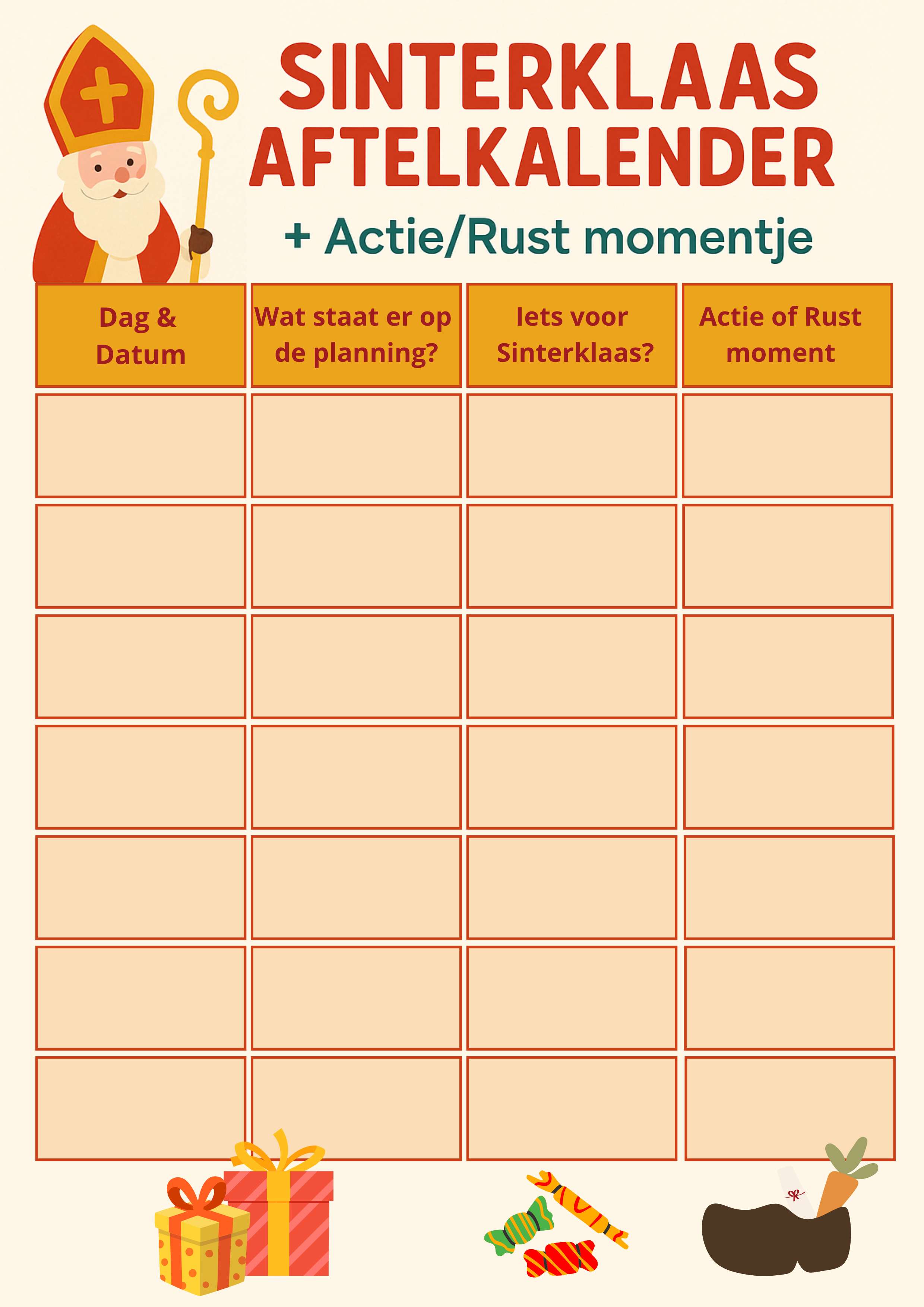 - Bonus: Sinterklaas Aftelkalender (ingevuld of blanco)